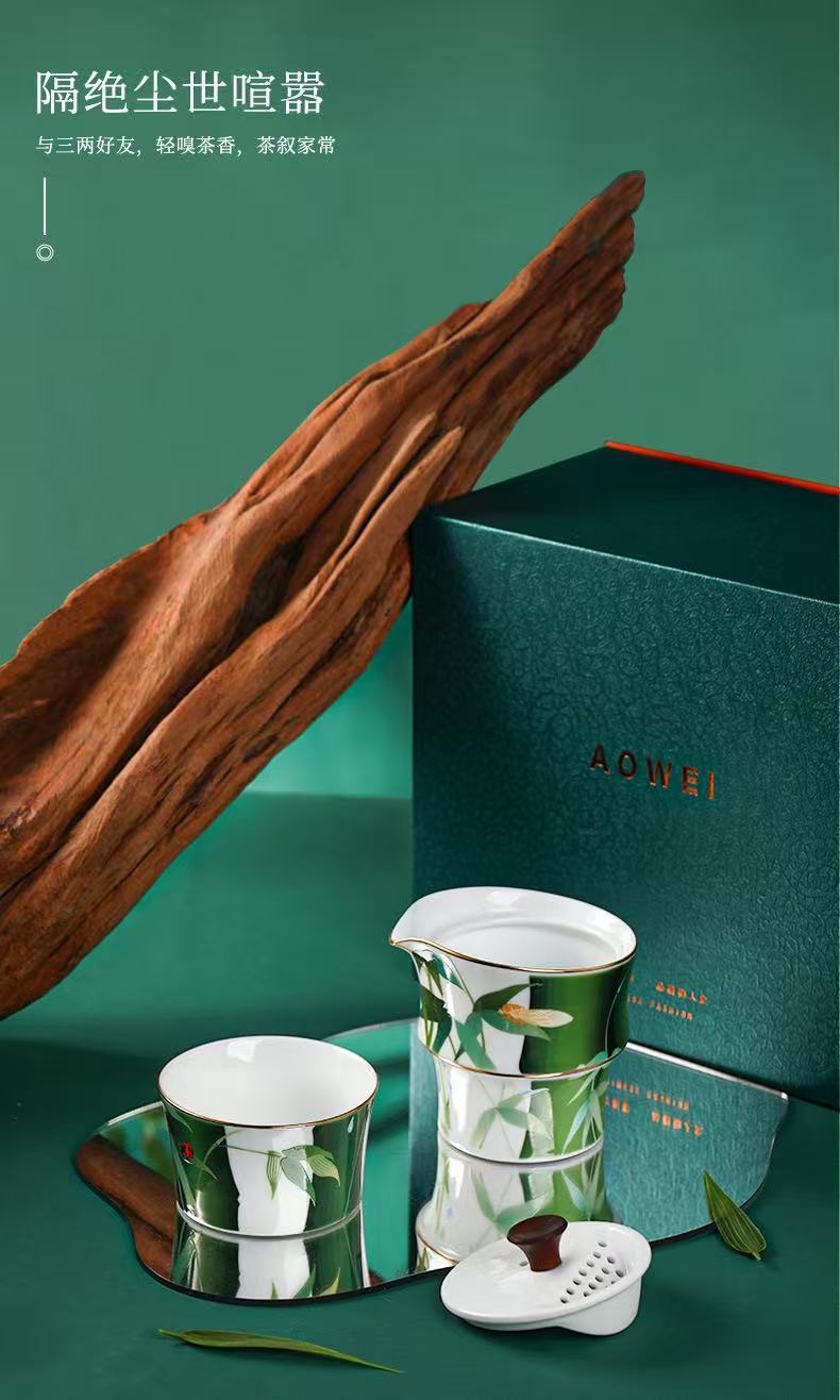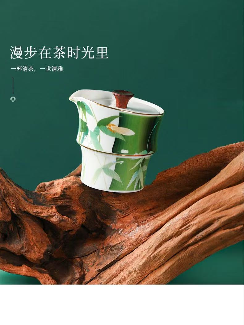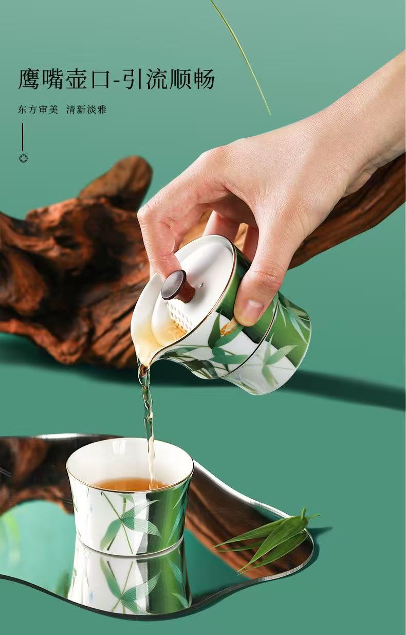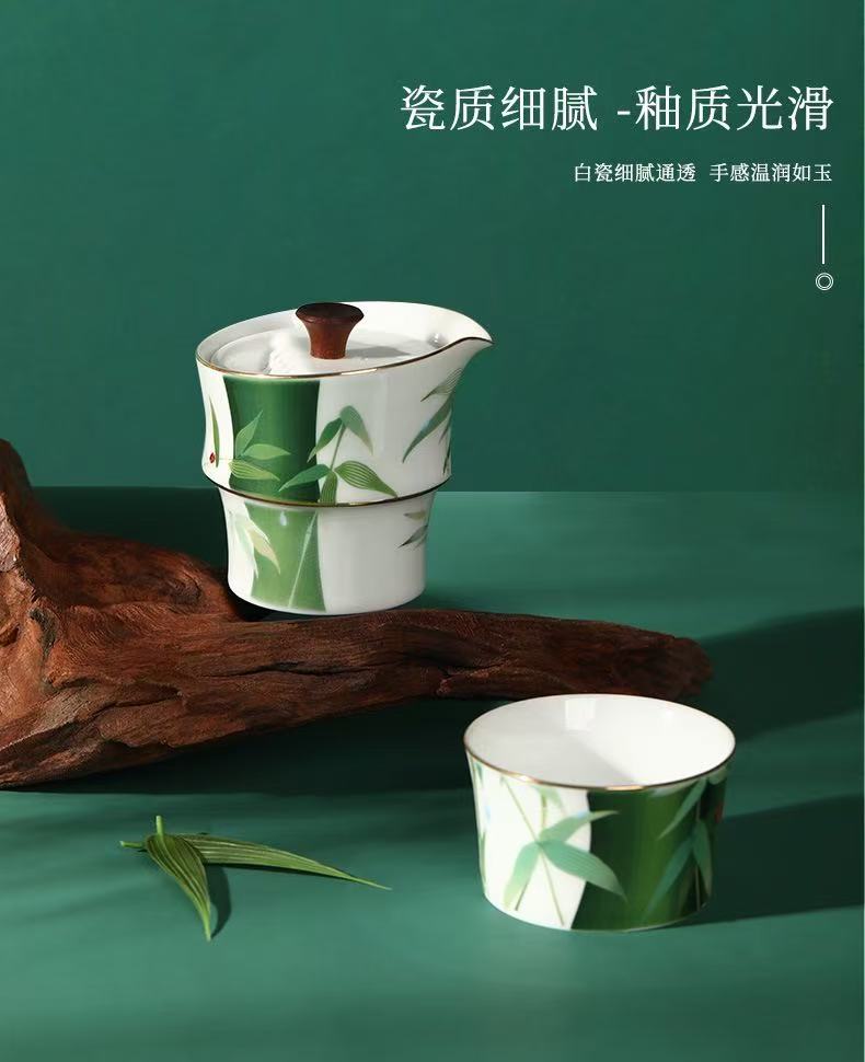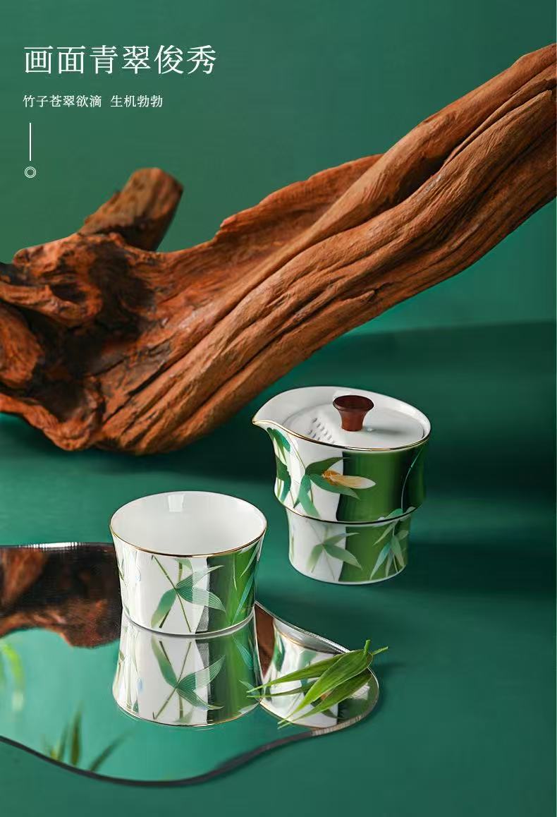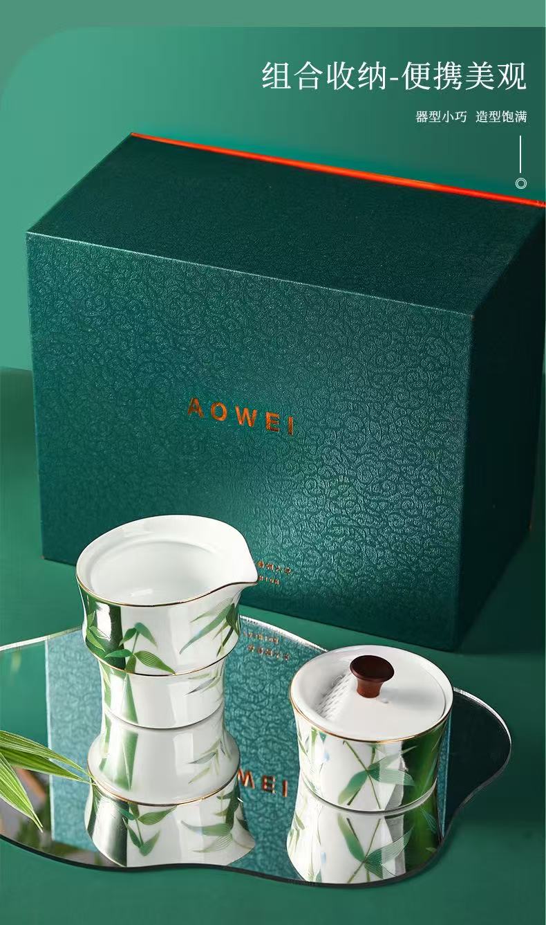 Portable Green Bamboo Tea Set for 2